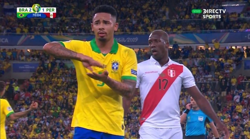 En el partido de la final entre los locales y Perú el árbitro chileno, Roberto Tobar tuvo una jornada para el olvido, ya que expulsó mal a Gabriel Jesús y cobró un penal inexistente a favor de la verdeamarelha.
