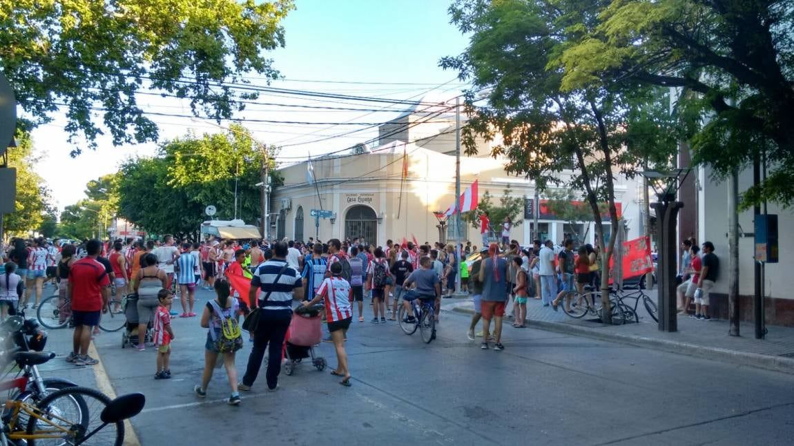 Cientos de hinchas de San Martín se reunieron esta tarde en el centro departamental para festejar que su amado equipo jugará por el ascenso al Federal A.