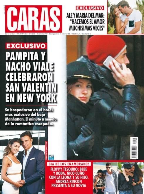 “Pampita y Nacho Viale celebraron San Valentín en New York. Se hospedaron en el hotel más exclusivo del bajo Manhattan. El minuto a minuto de la romántica escapada”, titula la bajada de la portada de Caras. Gente lo tituló como “Día de los Enamorados en Nueva York”.