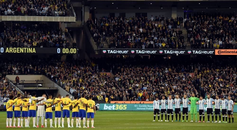 El seleccionado argentino inició el tercer período desde que finalizó el Mundial de Brasil 2014 con un nuevo entrenador, Jorge Sampaoli, después de las sucesivas salidas de Gerardo Martino y Edgardo Bauza con un partido ante Brasil En el estadio Melbourne Cricket Ground, Australia.
