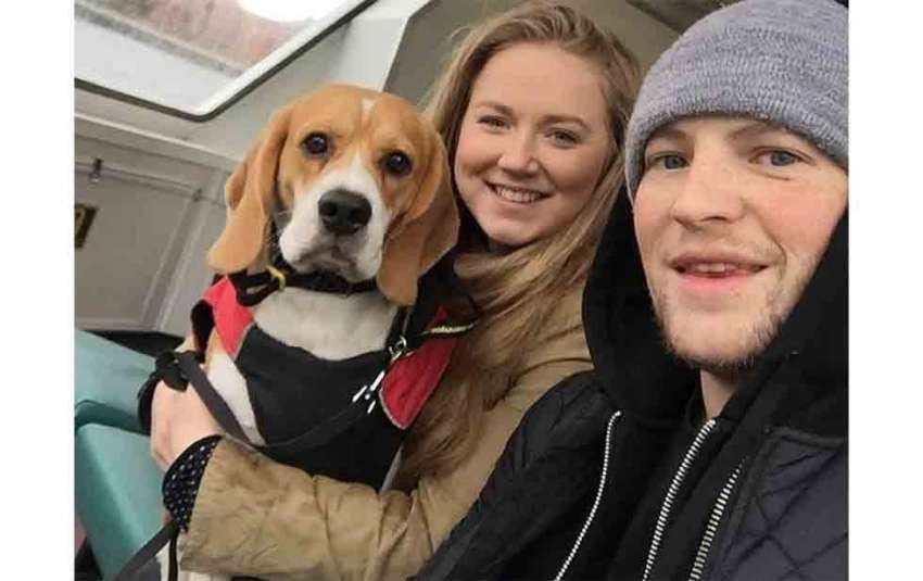 "En el momento que te das cuenta por qué le duele la oreja a tu perro… Él tiene a Donald Trump en ella”, publicó la británica Jade Robinson en Facebook, junto a la imagen de su perra Beagle.