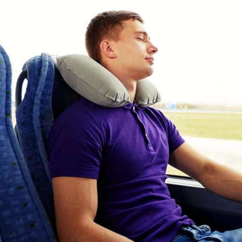 Para dormir en el avión y evitar despertarnos con contracturas, lo mejor es usar una almohada cervical porque la cabeza se suele caer hacia los costados. Hay cuellos que se atan a la mochila o al "carry on" y otros que son inflables y ocupan menos espacio.