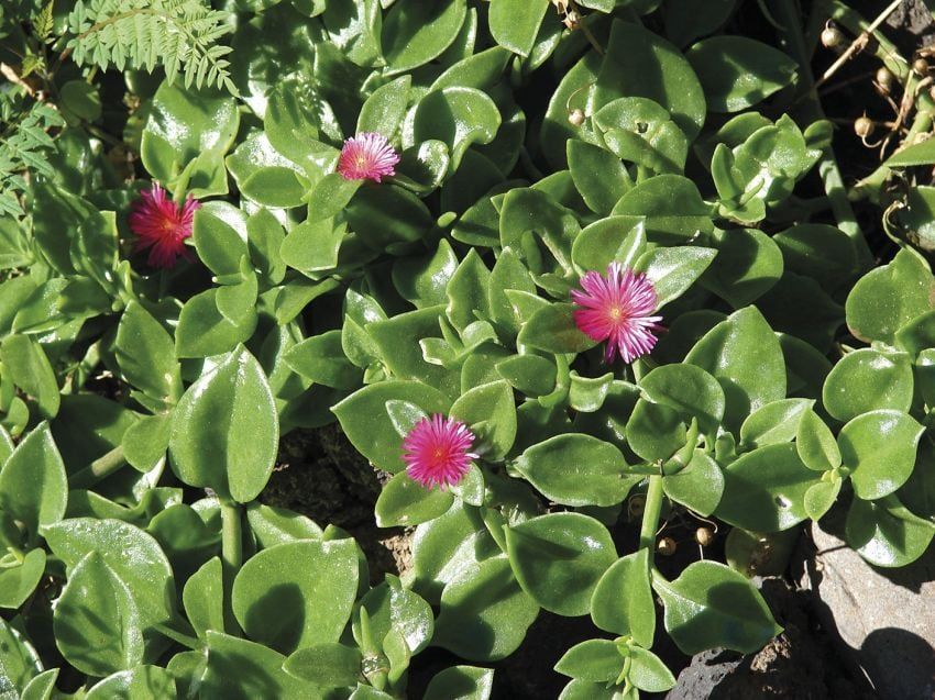 Planta de hojas carnosas que crece bien a pleno sol o media sombra. Es tolerante a la sequía, pero no a las heladas. Ideal para cubrir rocallas o sectores pedregosos. Posee flores de colores rojizos.