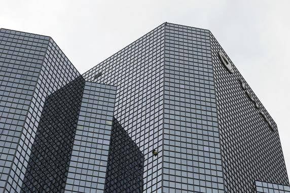 El escalador francés Alain Robert apareció de repente y subió la "Torre Total" - 187 metros - en La Defense, Paris, ante el asombro de los transeùntes.