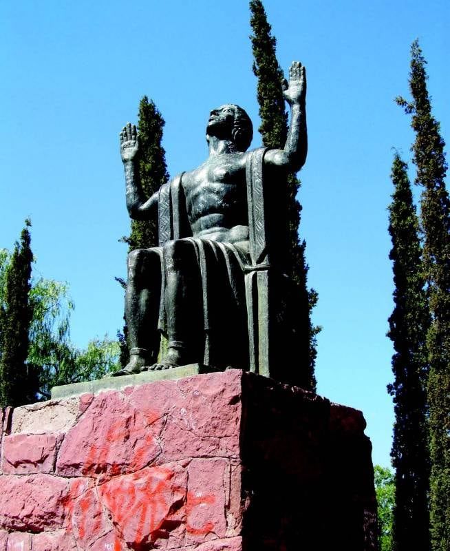 Autor: Juan José Cardona. Origen: Mendoza. De bronce. Colocación: 1922 (probablemente). Originalmente tuvo otro emplazamiento (el antiguo Zoológico) pero fue trasladado en 1940. En: Zoológico, Cerro de la Gloria, Av. de El Libertador.