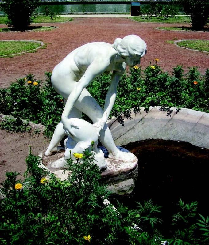 Autor y lugar de origen: desconocido. Colocación: 2008. De cemento. Copia del original de Claude Michell, llamado Clodion, realizada hacia 1900. En: Rosedal, Av. del Rosedal.