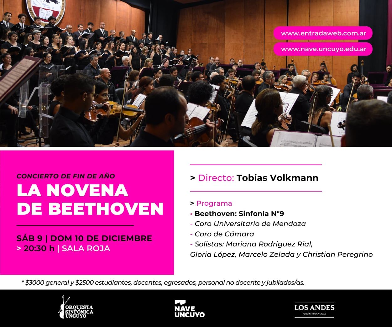La trascendental sinfonía del compositor austríaco será la elegida por los organismos artísticos de la UNCuyo para coronar su temporada 2023. Será el sábado 9 y domingo 10 de diciembre a las 20.30 en la Nave UNCuyo, con la dirección del maestro Tobías Volkmann. Participarán como solistas Mariana Rodríguez Rial, Gloria López, Marcelo Zelada y Christian Peregrino.