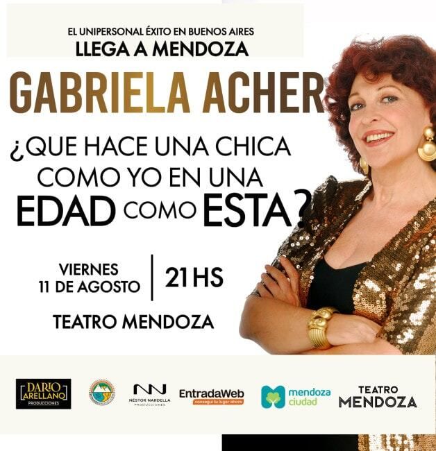 Ahora Gabriela Acher presenta su exitoso unipersonal, donde nadie puede para de reír presentando su nuevo espectáculo ¿Qué hace una chica como yo en una edad como esta?