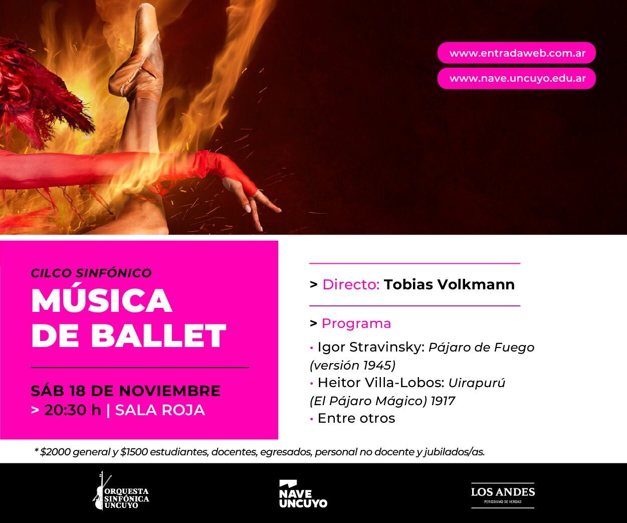 Música de Ballet, programa que forma parte del Ciclo Sinfónico de la Orquesta, será el sábado 18 de noviembre a las 20.30 en la Nave UNCuyo, bajo la dirección del maestro brasileño Tobías Volkmann.
