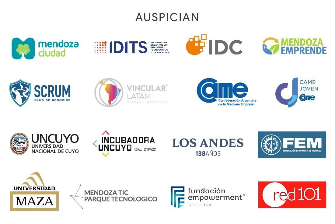 Bussiness Partners: Ciudad de Mendoza, Mendoza Emprende, CAME, CAME Joven, FEM, Mendoza TIC Parque Tecnológico, IDITS, IDC, Diario Los Andes, Red FM 101, UNCuyo, Incubadora UNCUYO, Universidad Maza, Fundación Empowerment, Scrum Club de Negocios.