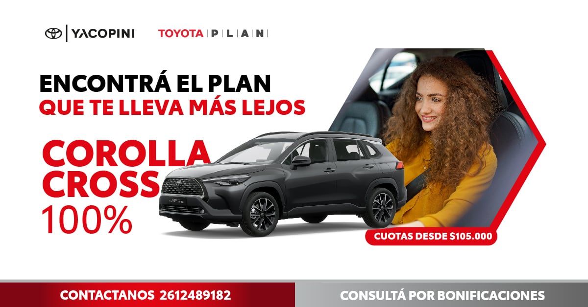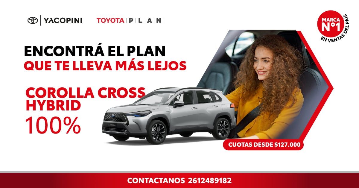 En tanto, el plan Toyota Corolla Cross Hybrid 100% con cuota 1 desde $133.435, ofrece la versión híbrida de este auto recargable.
