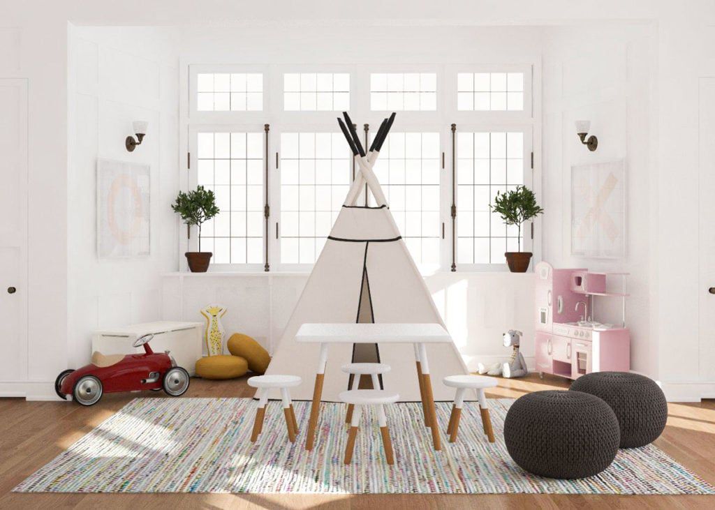 2. Decoración y equipamiento. Antes de equiparlo, pensar en la comodidad. Se puede armar un sector para ver películas y escuchar música; allí lo más práctico es elegir un mueble de madera con rueditas para facilitar su traslado. También las bibliotecas, estanterías o modulares pueden actuar como separadores de ambientes y a su vez cumplen la función de contener juguetes o libros. En el caso de los niños chicos, una mesita con sillas será ideal para jugar. Algo que les encanta son las carpas “tipi”, que les permite un rinconcito de intimidad para sus juegos.