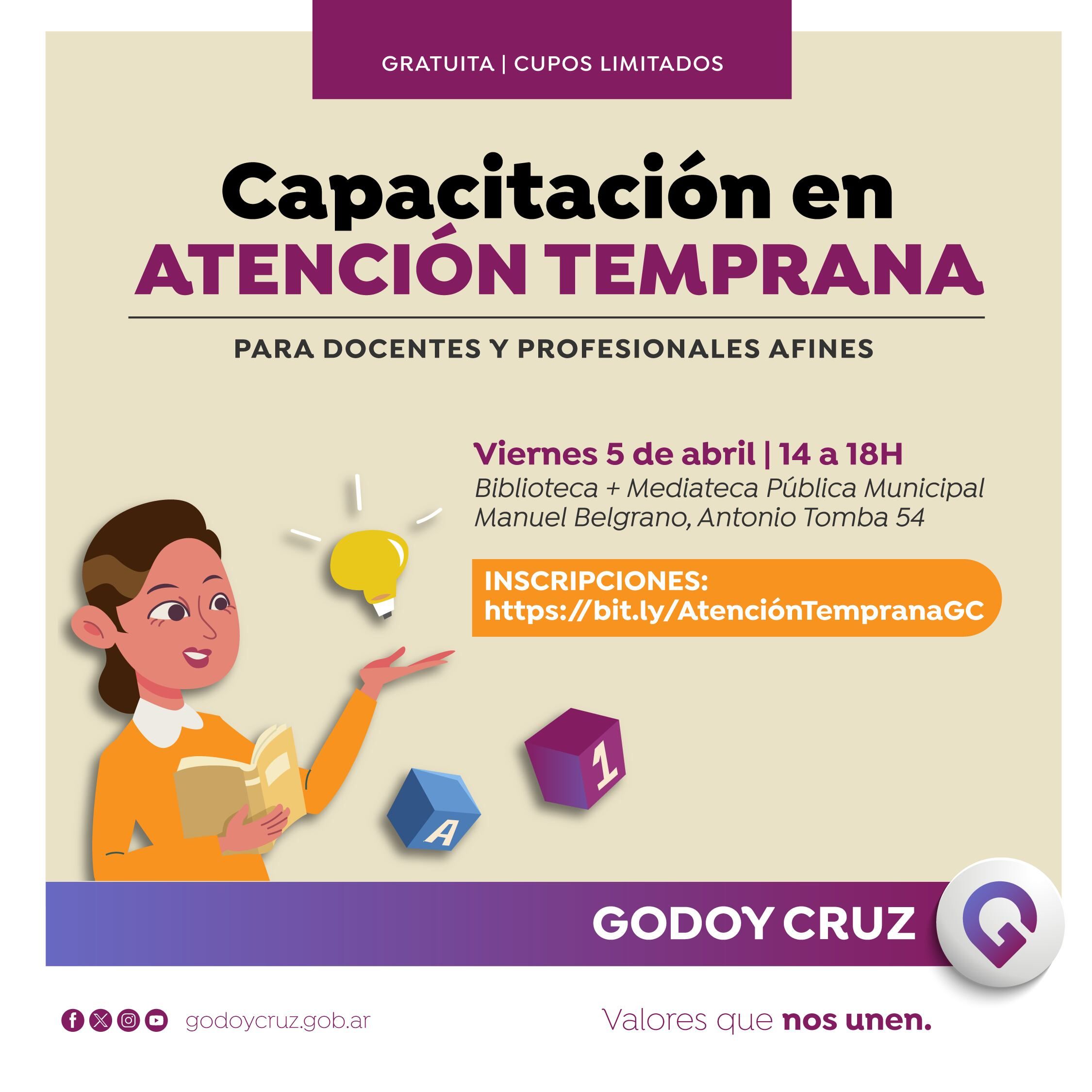 El taller de Atención Temprana será el viernes 5, de 14 a 18, en la B+M, ubicada en calle Antonio Tomba 54. Es que tiene el objetivo de promover el desarrollo integral de niños y niñas.