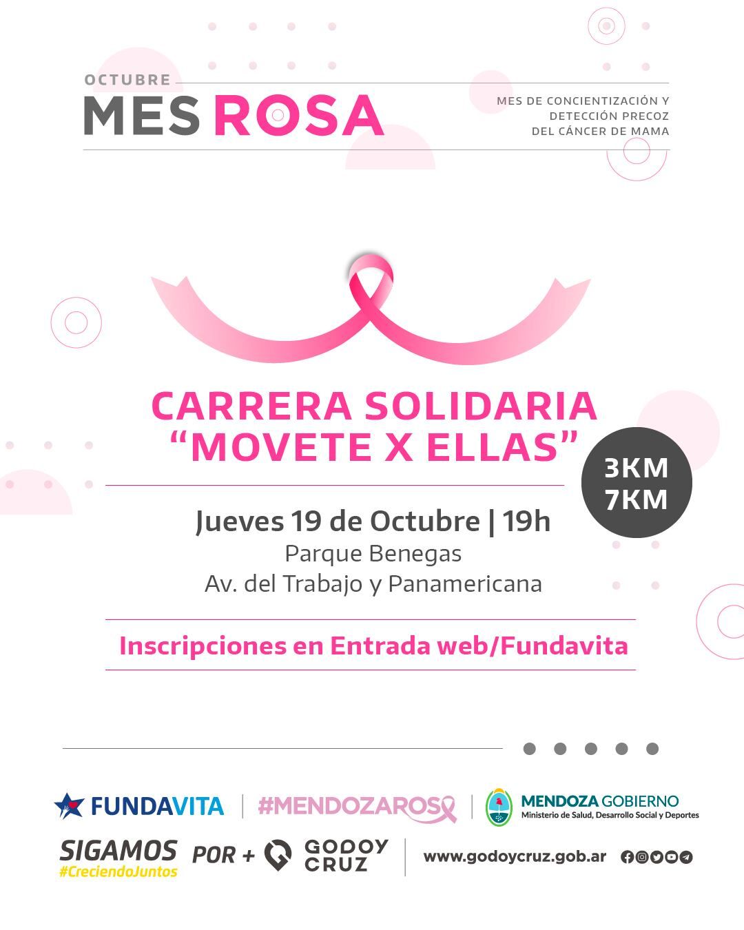 Finalmente, el jueves 19, a las 19, se llevará a cabo la Maratón Fundavita Movete x ellas. Allí, se podrá optar por hacer un recorrido de 3 km, o uno más largo de 7 km. La icónica carrera nocturna de Fundavita y la Municipalidad de Godoy Cruz no será competitiva en esta edición. Sin embargo, se centrará en la toma de conciencia sobre el cáncer de mama. Cabe destacar que la maratón promete una jornada llena de música, juegos, premios y sorteos para todos los participantes. Para poder participar, deberás inscribirte en entradas web.