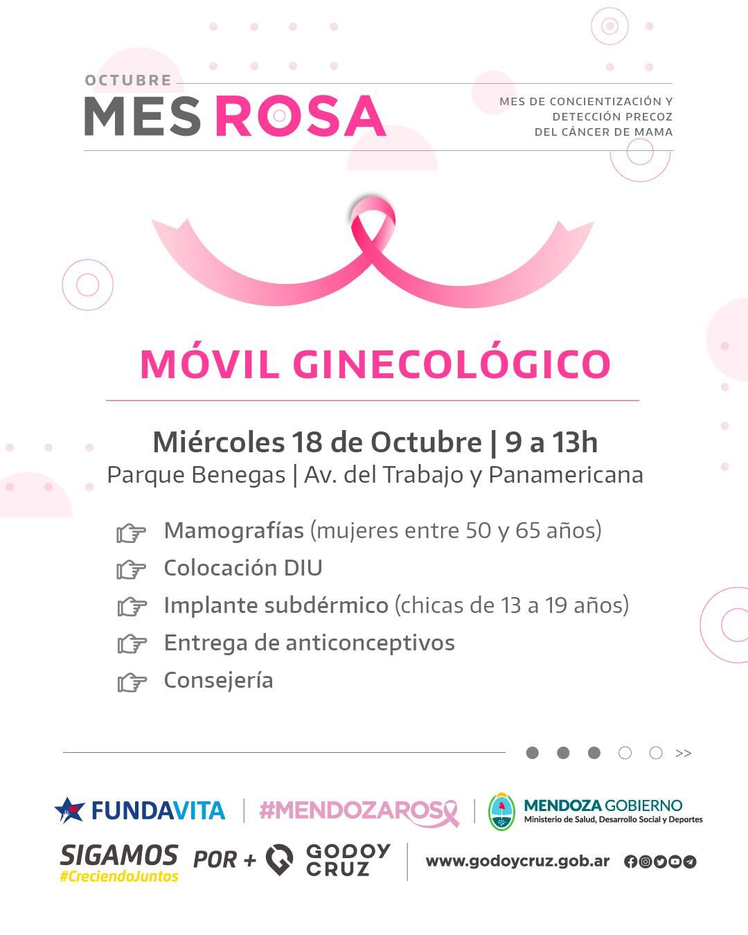 En tanto el miércoles 18, de 9 a 13, estará el Móvil Ginecológico. El mismo ofrecerá estudios gratuitos a personas sin obra social. Esto incluye mamografías para quienes tengan entre 50 y 65 años, o para menores que cuenten con indicación médica.