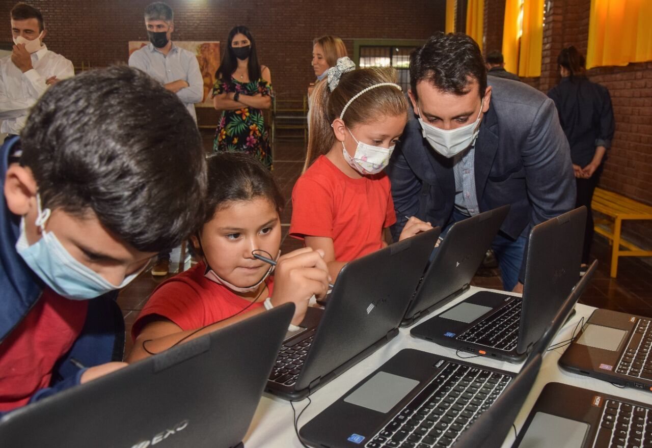 “Lo que intenta esta iniciativa conjunta entre DGE y el Municipio es incorporar la tecnología al aprendizaje”, contó Tadeo García Zalazar. Además, el Intendente adelantó que “vamos a estar haciendo lo mismo en el primer año del secundario”.