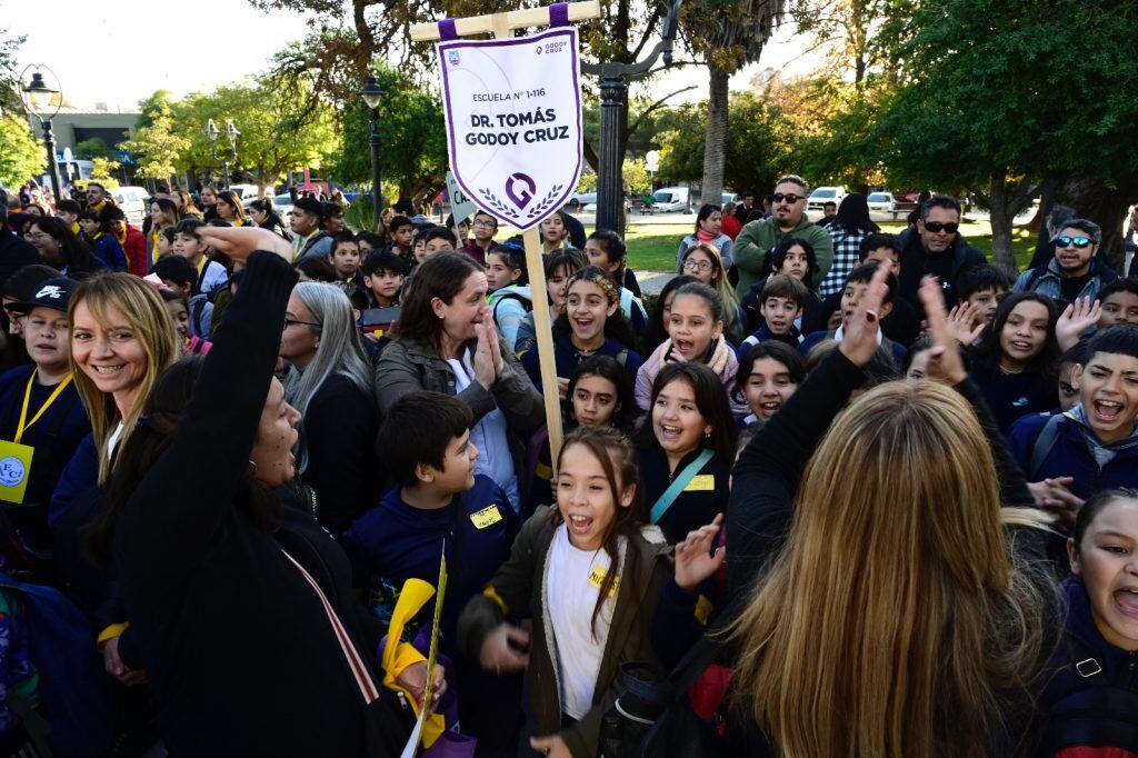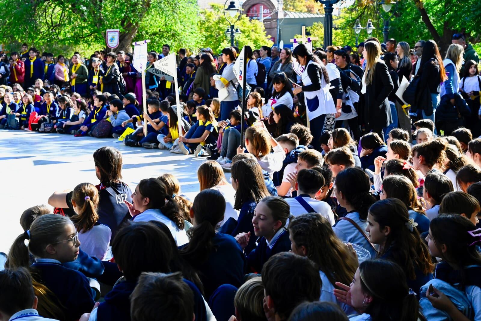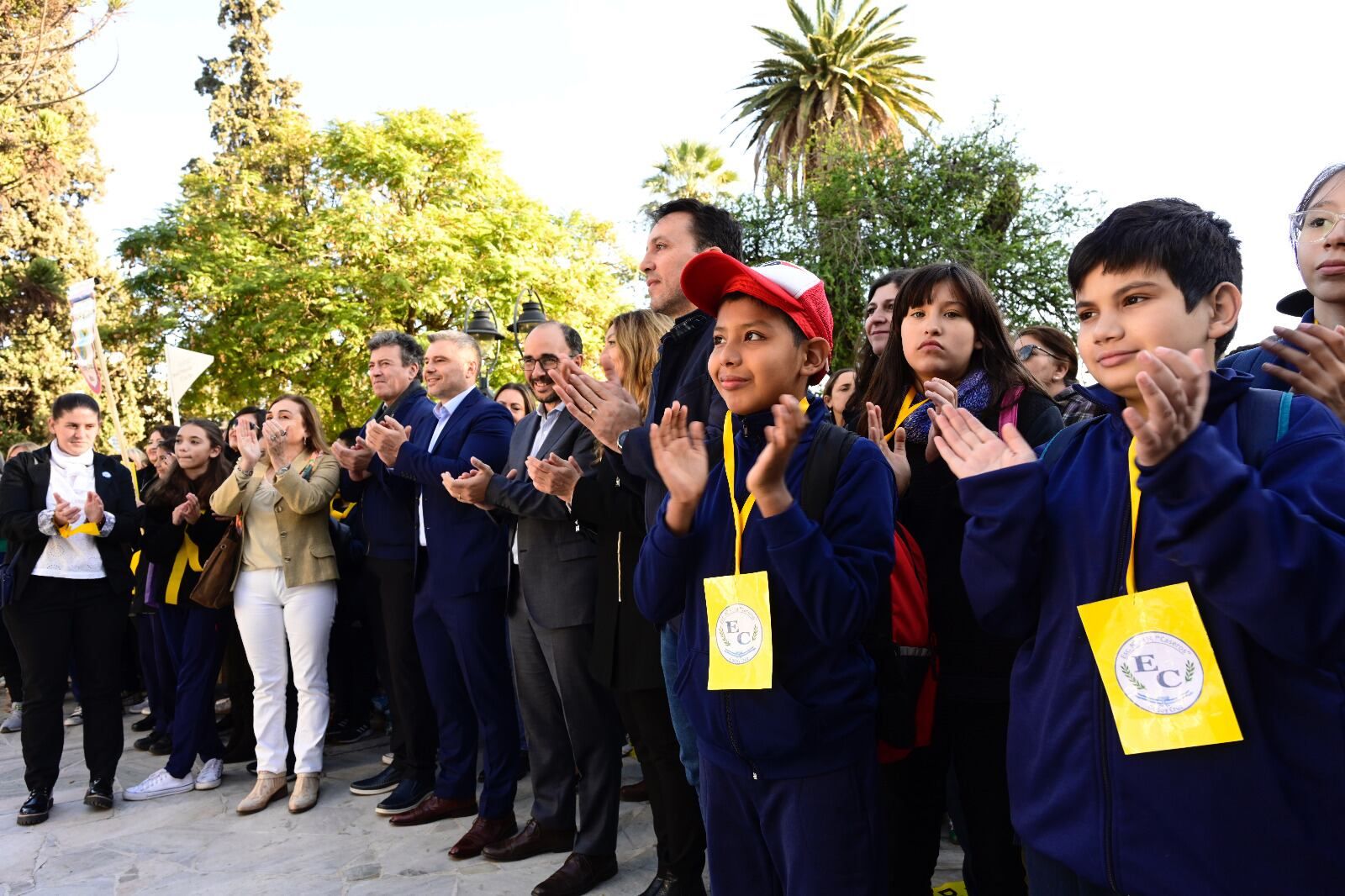 Allí, Tadeo García Zalazar, se dirigió a niñas y niños y destacó que “para querer y cuidar a nuestra ciudad, debemos conocerla”. Por eso, el proyecto encarado en conjunto entre la Municipalidad y las escuelas incluyó un recorrido por los edificios históricos del casco cívico.
