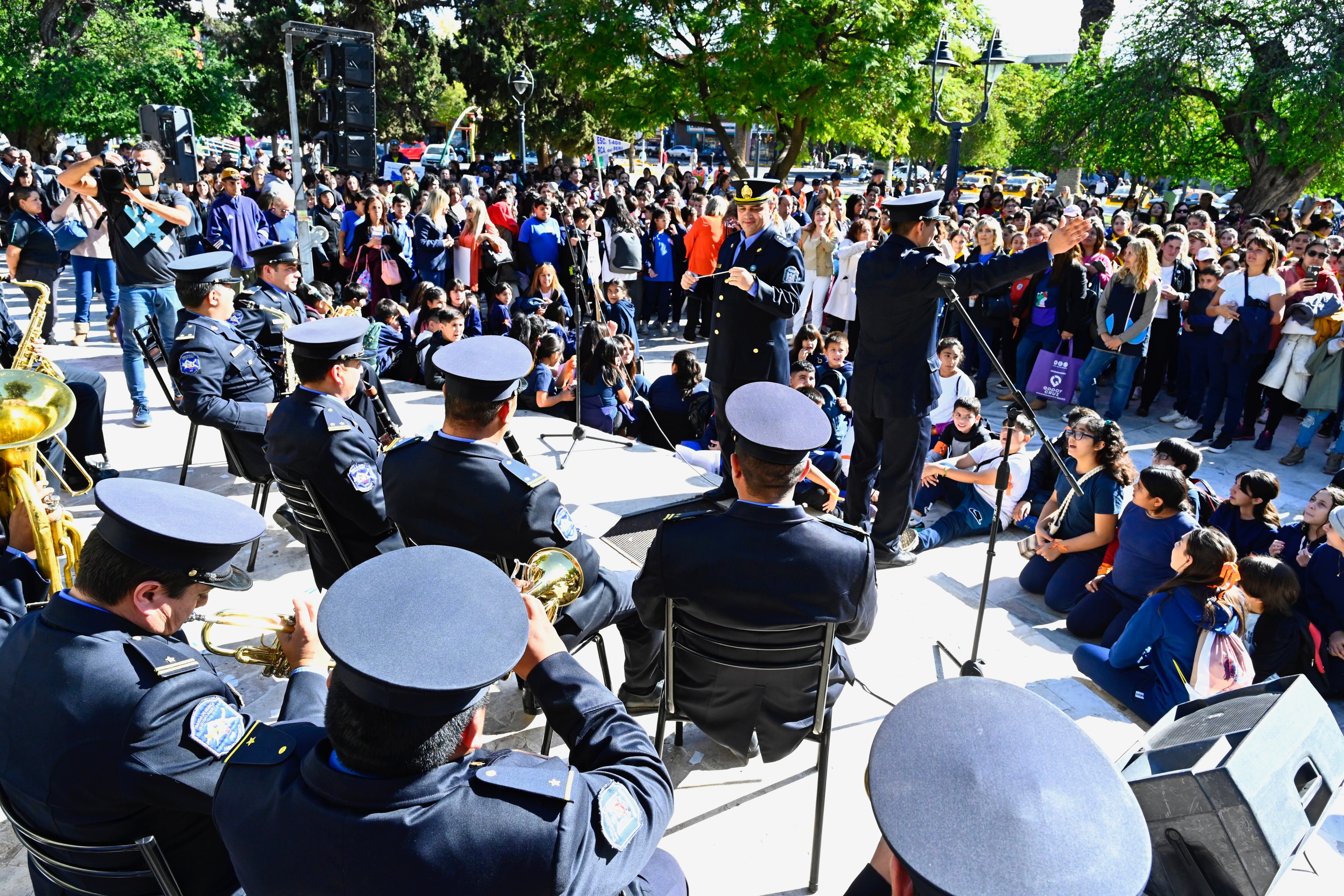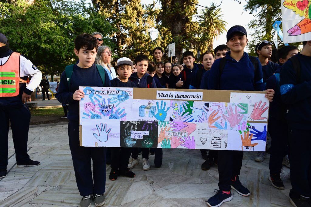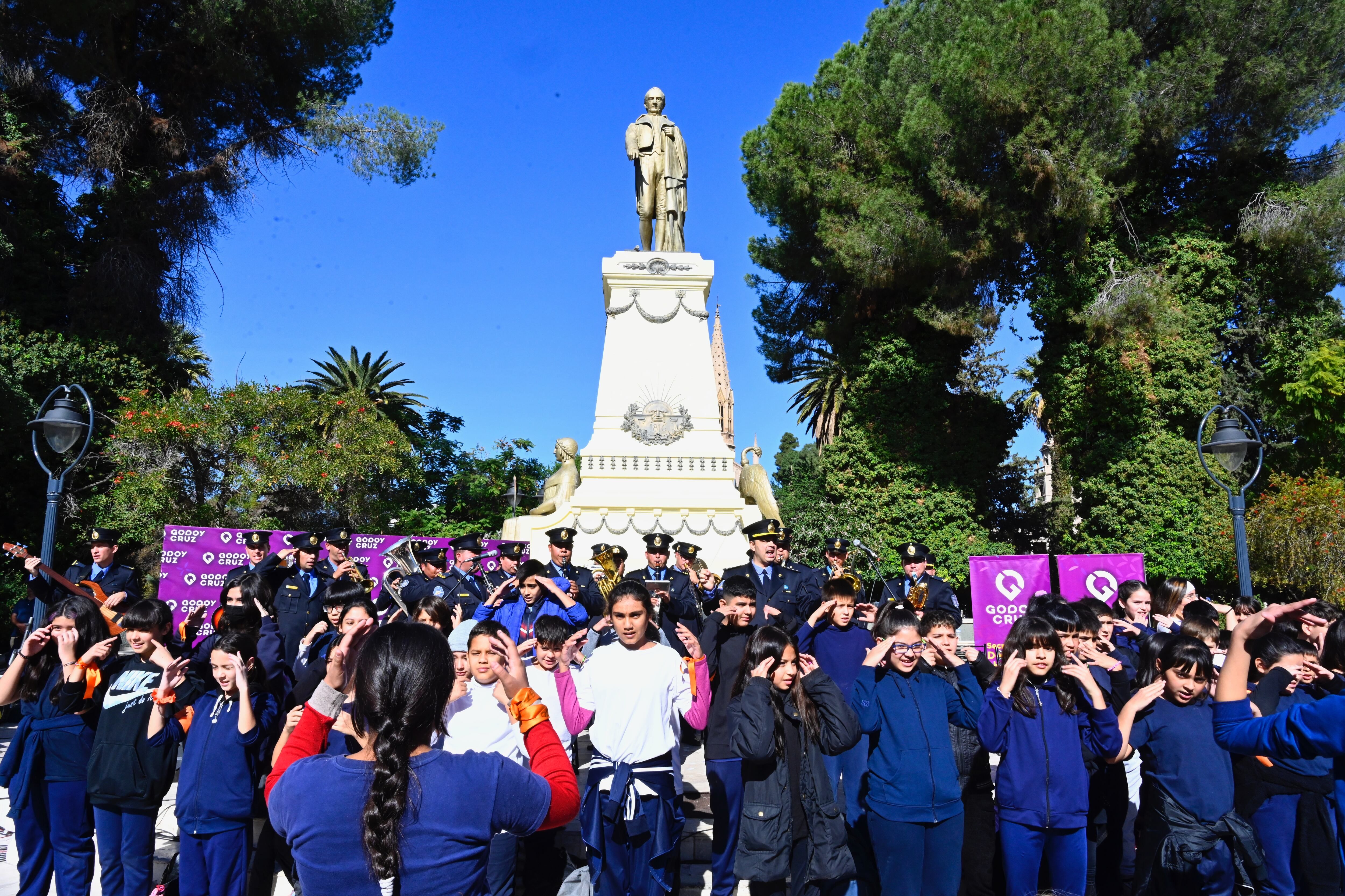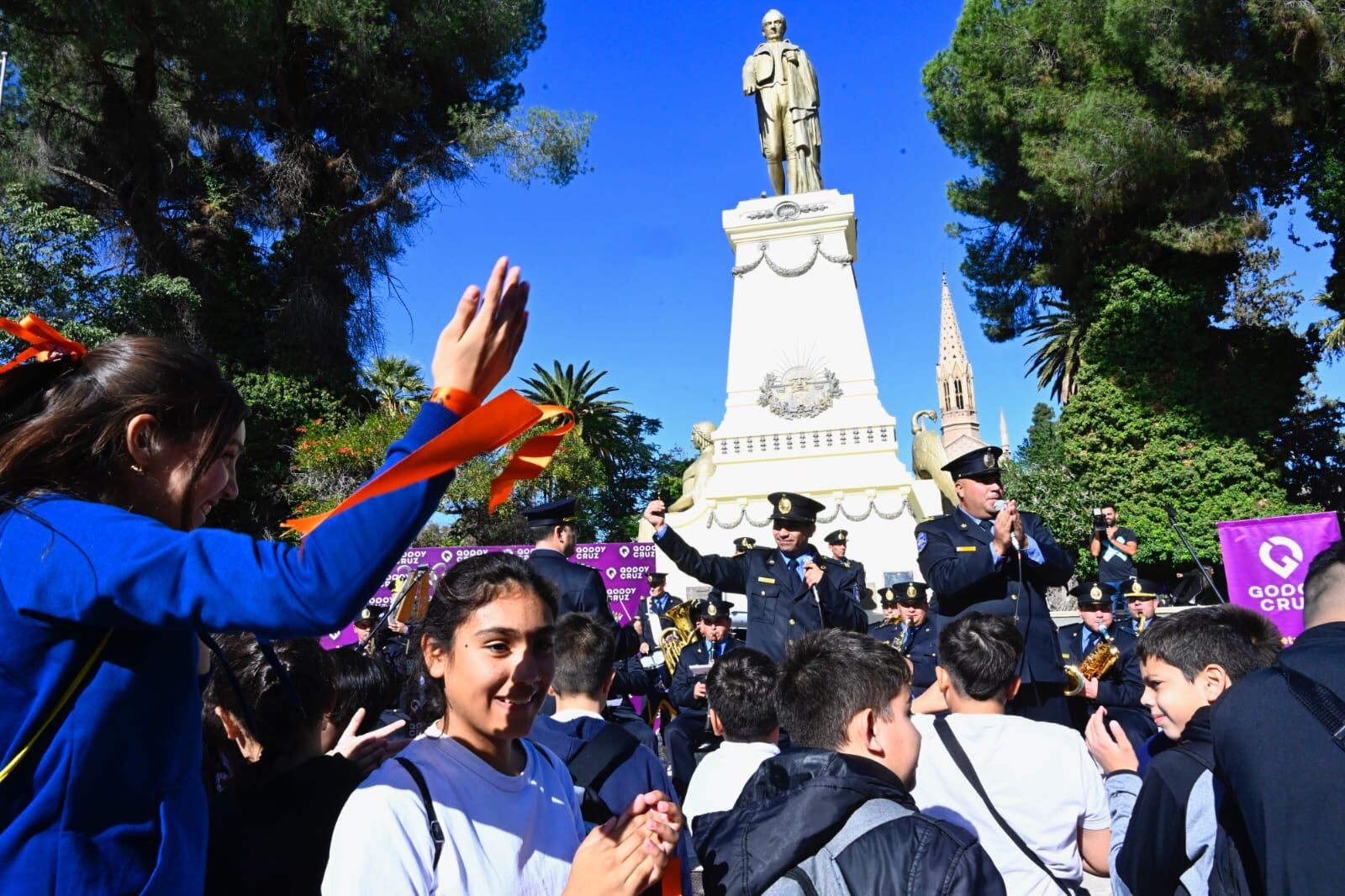 Allí, Tadeo García Zalazar, se dirigió a niñas y niños y destacó que “para querer y cuidar a nuestra ciudad, debemos conocerla”. Por eso, el proyecto encarado en conjunto entre la Municipalidad y las escuelas incluyó un recorrido por los edificios históricos del casco cívico.