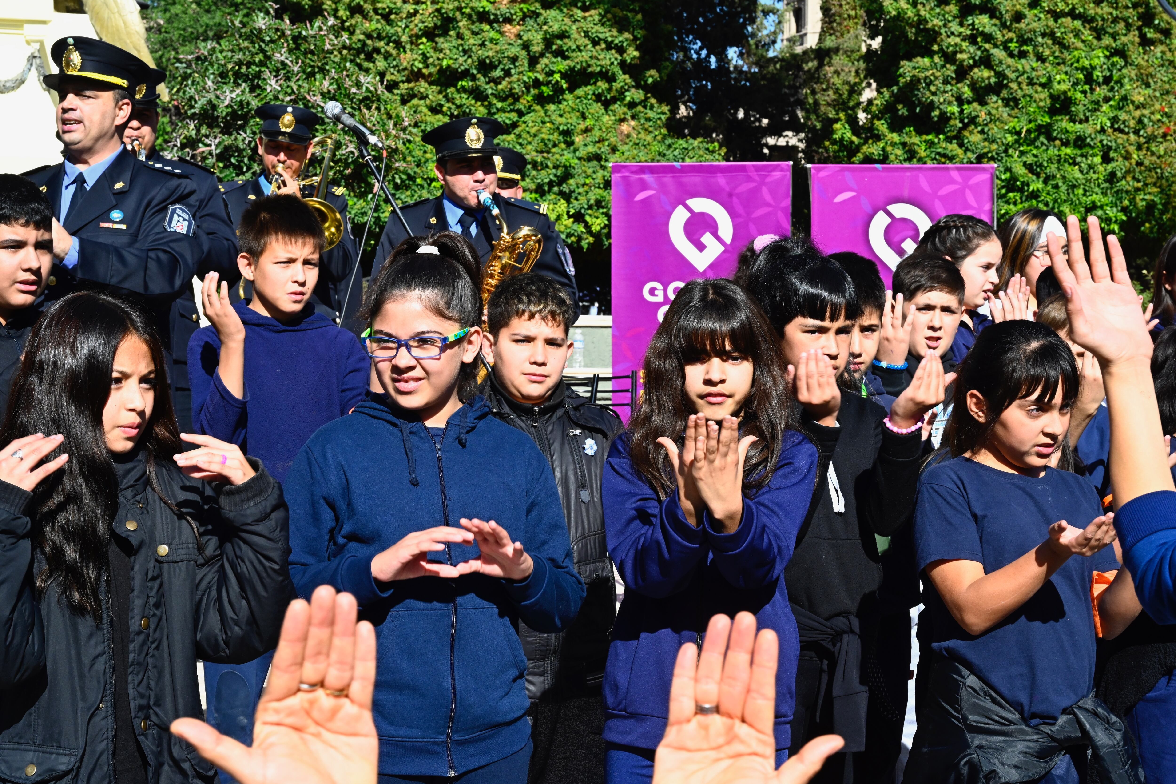 Finalmente, a las 12, los chicos entonaron las estrofas del Himno Nacional Argentino.