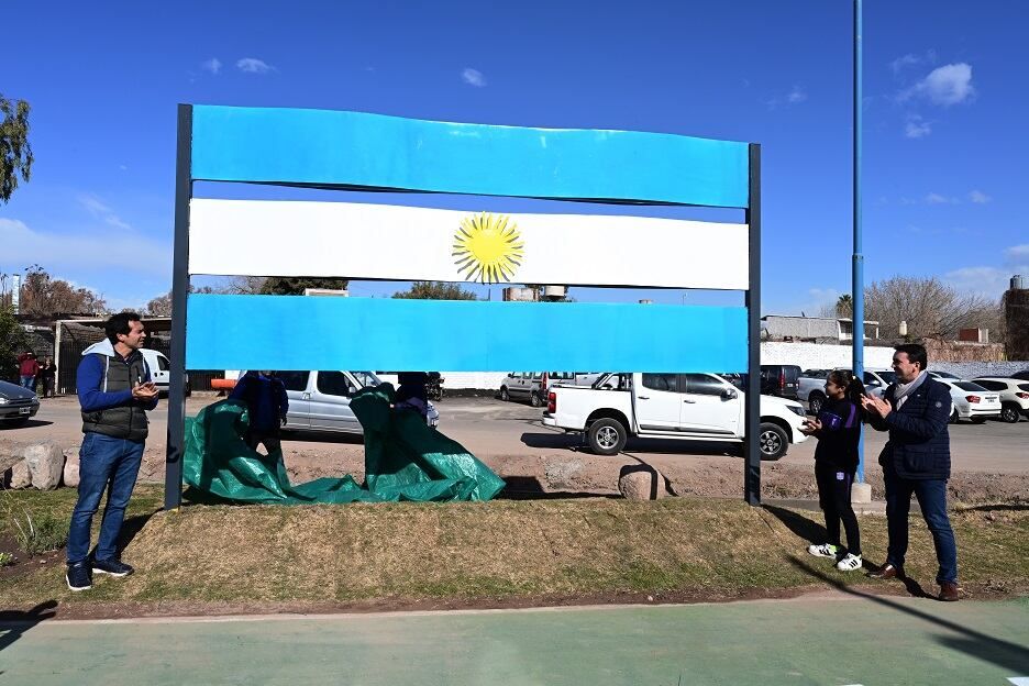 En consecuencia, jerarquizando la entrada se descubrió una bandera argentina, elaborada por el equipo metalúrgico, de 5 x 3 metros.