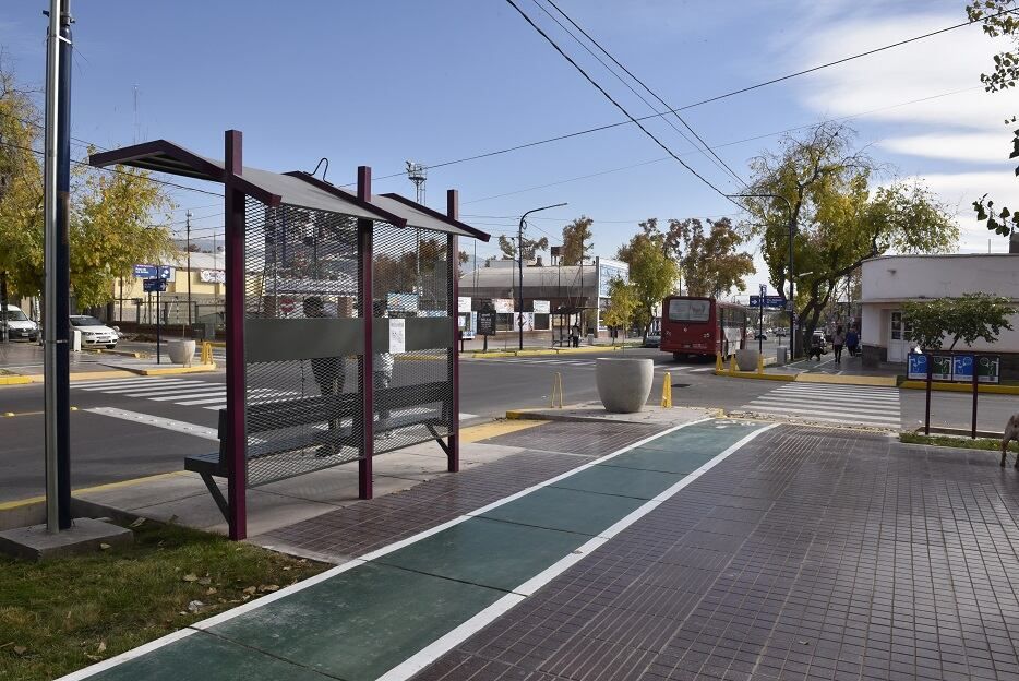 Así como papeleros, macetones y cestos para residuos domiciliarios con separación para secos y húmedos. Las nuevas paradas de colectivo tienen cargadores con puertos USB para dispositivos móviles.