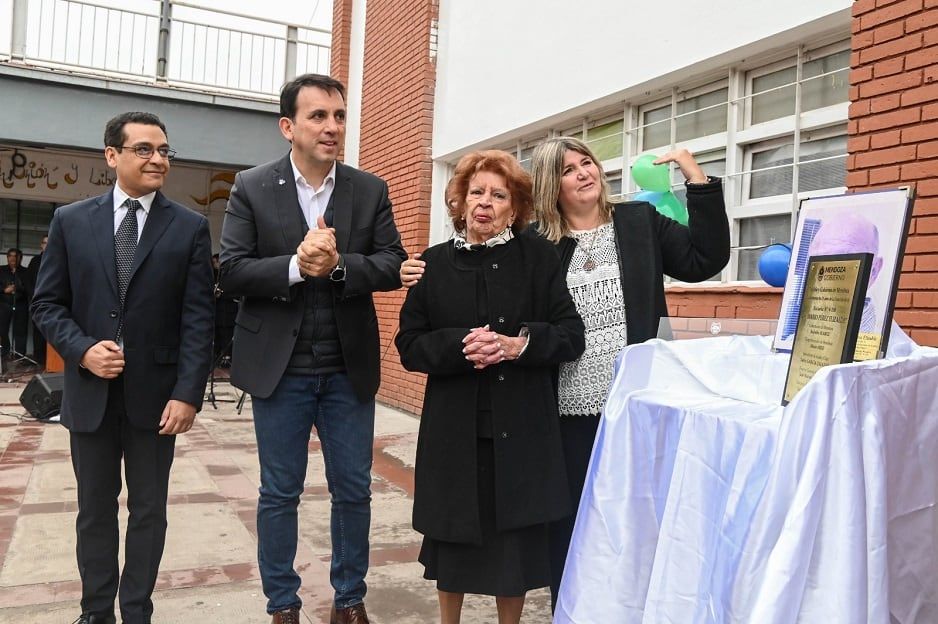 El intendente de Godoy Cruz, Tadeo García Zalazar, anunció la construcción del techo del patio con 33 paneles solares. Además, felicitó a la escuela por su destacado compromiso ambiental.