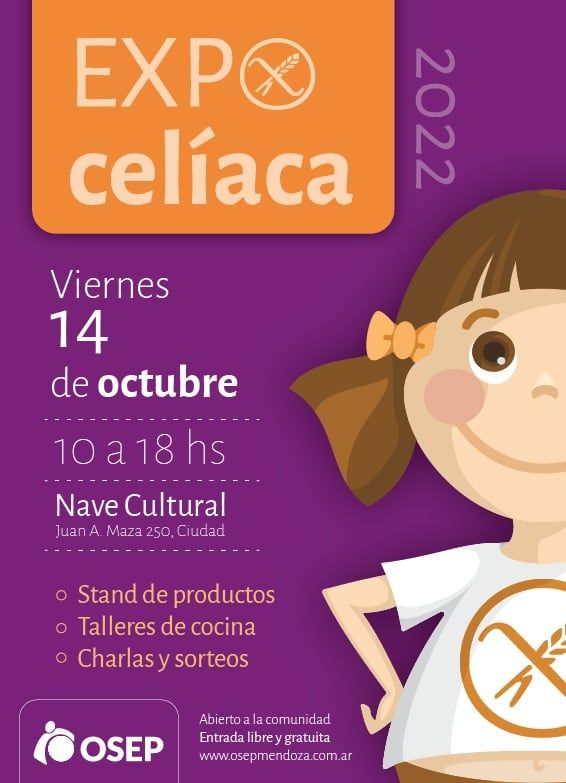 La Expocelíaca se desarrollará el viernes 14 de octubre, de 10 a 18, en la Nave Cultural, Avenida España y Maza, de Ciudad.