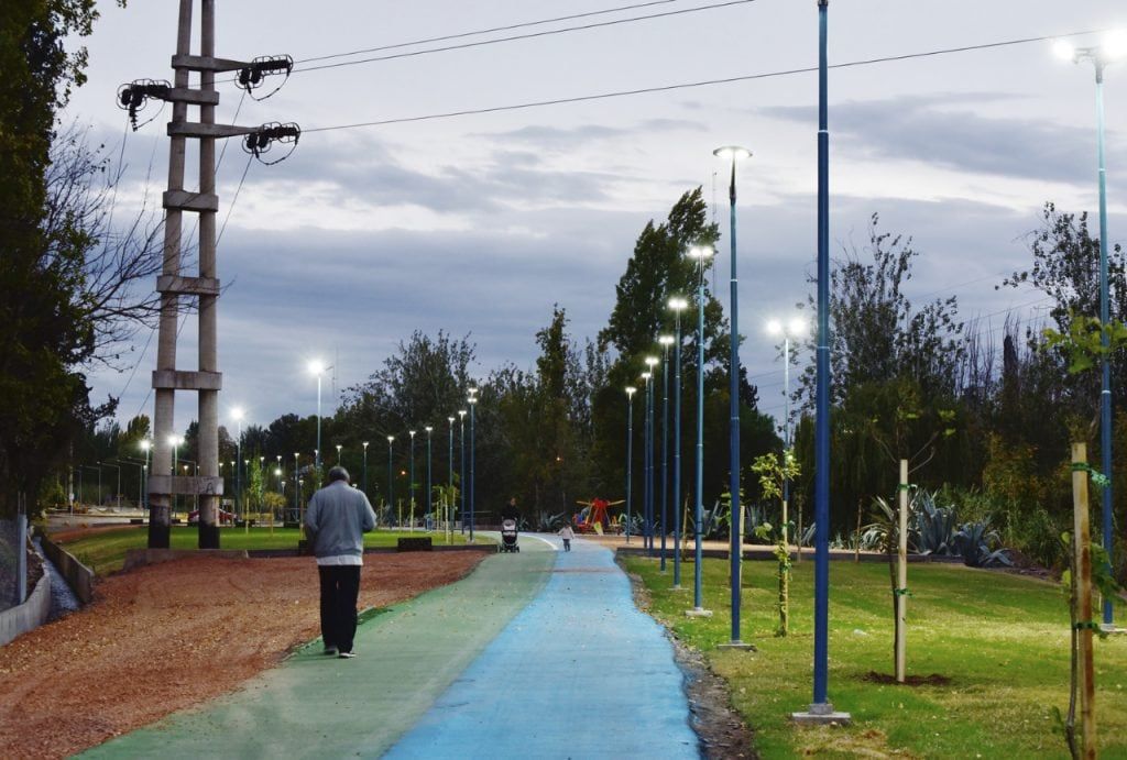 Por último, respecto a la iluminación, se incorporaron 42 farolas led, distribuidas a lo largo de la ciclovía y 8 torres de 3 reflectores cada.