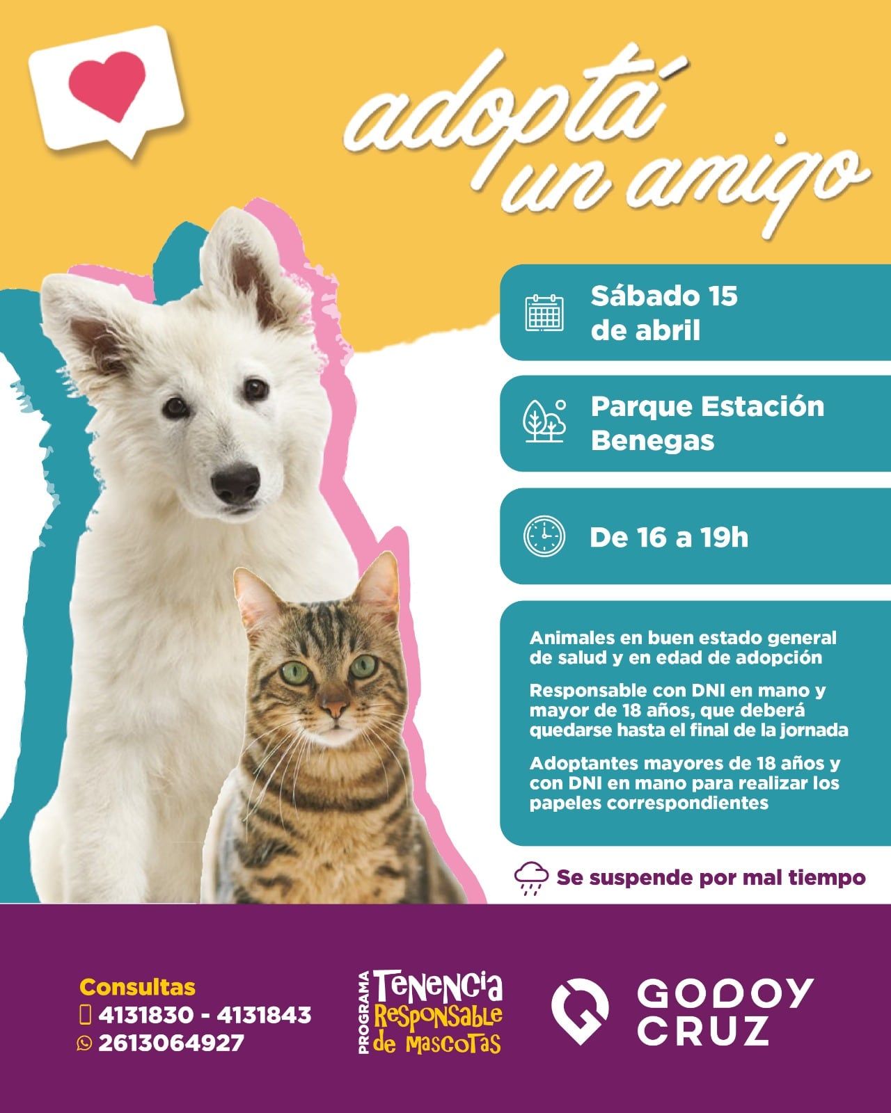 Las jornadas de Adoptá un amigo vuelven este sábado 15 al parque Benegas, de 16 a 19.