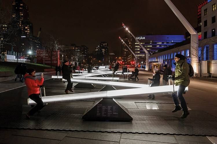 “Impulse” es una instalación de invierno en la ciudad de Montreal que cuenta con treinta balancines gigantes y una serie de video proyecciones en las fachadas de los edificios de los alrededores. Todo acompañado por música lo que, sin duda, transforma este espacio en un “parque iluminado” que –pese al frío- invita a quedarse.