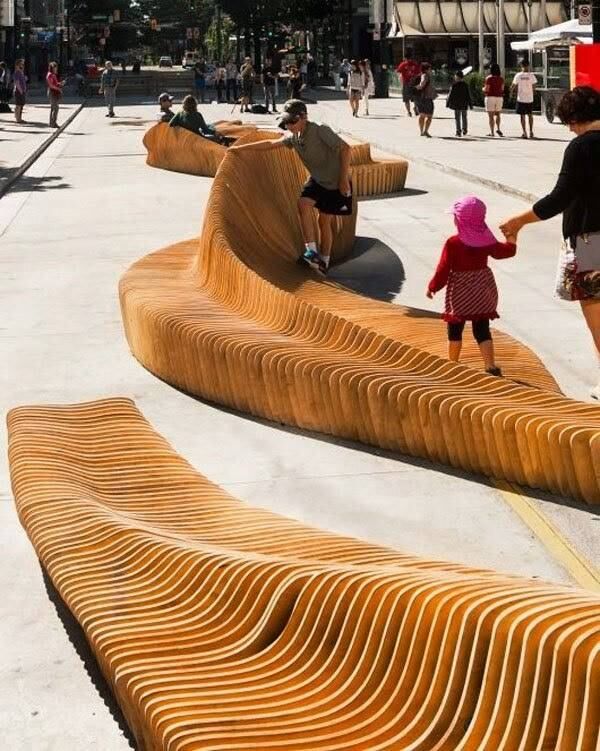 En la calle principal de esa ciudad de Canadá, Robson, la intención del diseño a cargo de Urban Reef es invitar a la gente a sentarse, relajarse y jugar. Su forma escultural se forma a partir de una serie de secciones que se transforman una en otra con el fin logrado de crear una calidad dinámica que despierta a la curiosidad y la exploración.