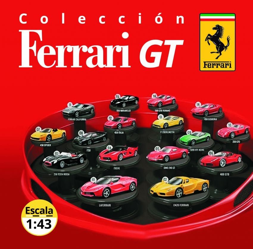 Se trata de una espectacular una colección de autitos a escala 1:43, con algunos de los modelos de calle más emblemáticos de la historia de Ferrari.