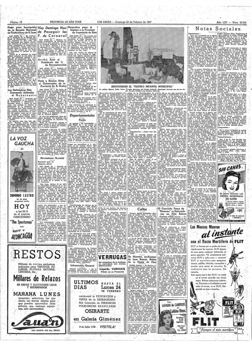 Y para finalizar digo que en un futuro no muy lejano Mendoza contará con un verdadero Teatro Infantil, con una institución modelo que ha de ser orgullo de nuestra provincia y del país y que no he de escatimar esfuerzo y he de dar por él lo más íntimo de mi capacidad creadora”.