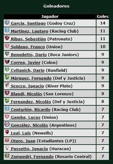 El delantero uruguayo Santiago "Morro" García anotó ayer su gol número 14 en la Superliga y es líder absoluto en la tabla de goleadores.