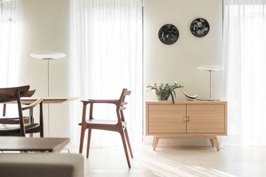 En cuanto al color de los muebles, toma los tonos oscuros (inspirados en los interiores de las casas tradicionales japonesas) y los combina con los tonos claros característicos del roble que se encuentran en el Scandi.