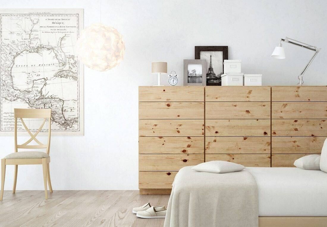 La madera se utiliza en sus modalidades más claras, siendo las de arce, pino, haya y roble las más utilizadas. Estas maderas están muy presentes y se usan no solo en muebles, sino también en accesorios decorativos.
