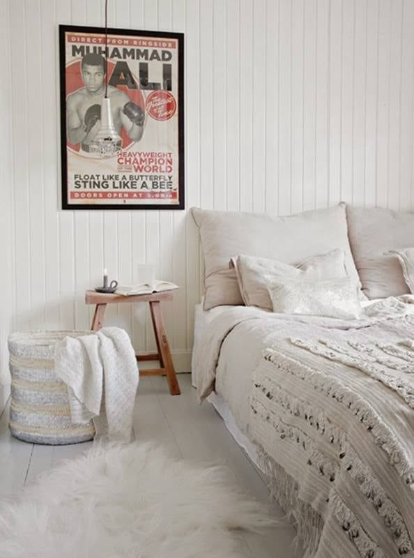 A los colores blancos, y tenues del estilo nórdico, le podés unir una cabecera más original y arriesgada, aprovechando la tendencia noretnic. Quizás te pueda servir de cabecera aquel cuadro que compraste en tu viaje por países africanos o podés crear un mosaico de fotos de tus viajes y lugares donde has estado, y que hagan la función de cabecera.
