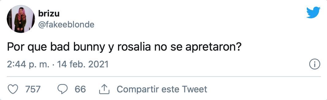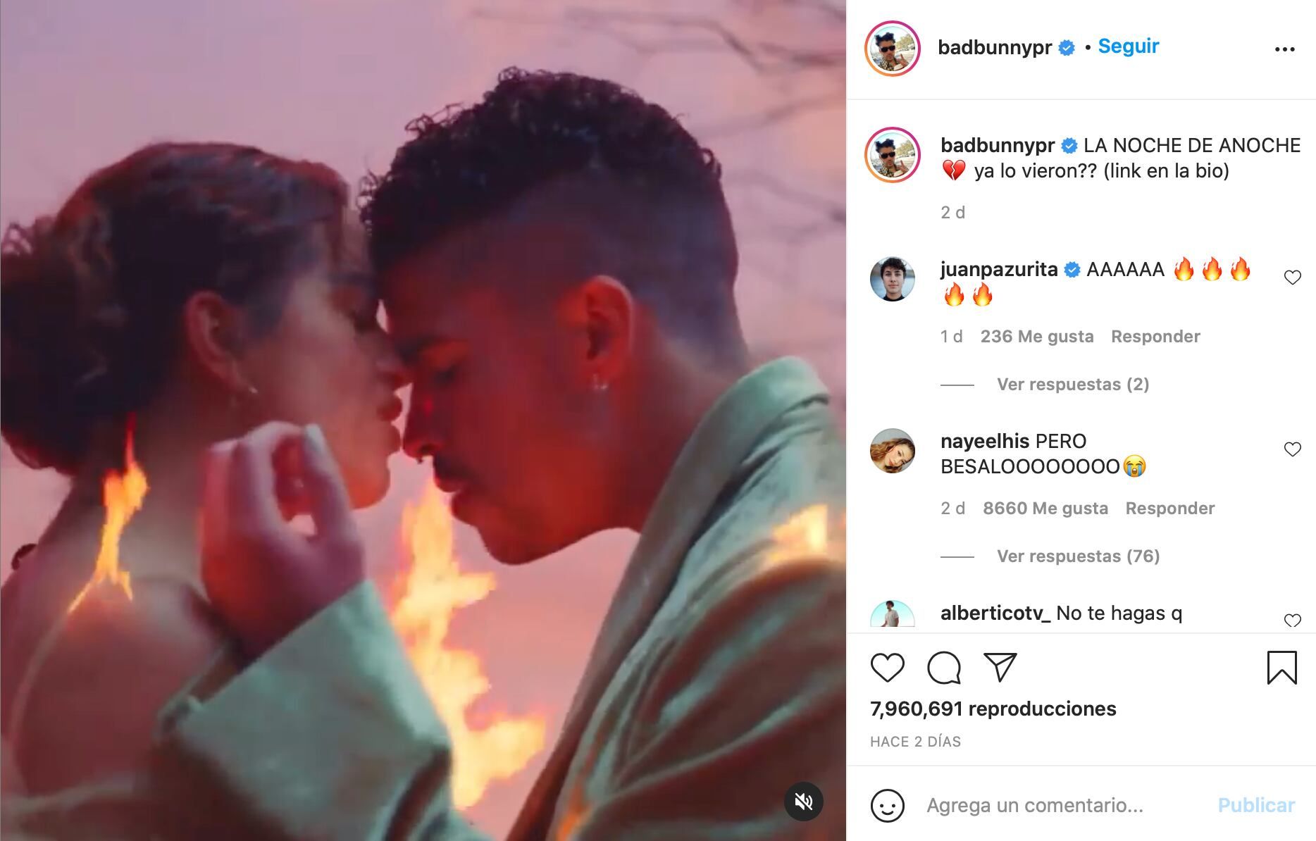 “Que pasa si juegas con fuego??????? Feliz día de San Valentin”, fueron las palabras con las que la española promocionó el mismo 14 el estreno. Por su parte, Bad Bunny recibió miles de comentarios en sus publicaciones que atinaban a un beso entre ambos. La química es innegable.