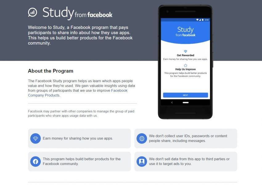 La app Study está disponible actualmente en Estados Unidos y la India. Facebook no ha dicho cuánto pagará a los participantes por compartir su información.