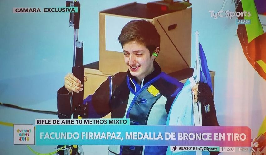 El mendocino Facundo Firmapaz, de 17 años, se quedó con la medalla de bronce en tiro deportivo en los Juegos Olímpicos de la Juventud Buenos Aires 2018.