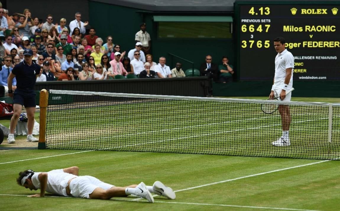 Federer, ex número uno y campeón de Wimbledon en 2003, 2004, 2005, 2006, 2007, 2009 y 2012, venía de ganarle un partido memorable al croata Marin Cilic también en cinco sets y donde levantó tres match points.