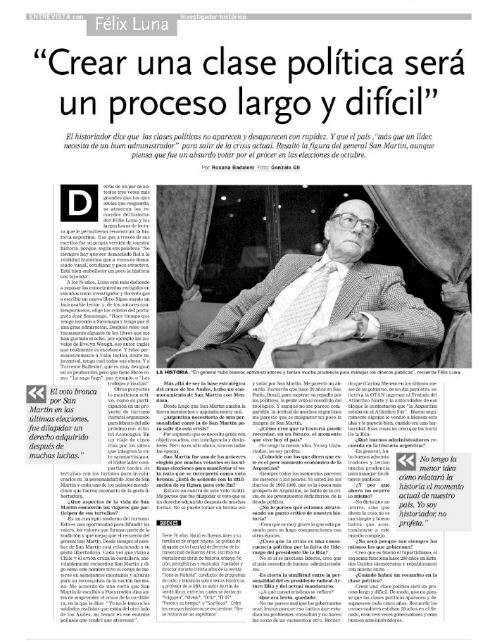 El título de la nota decía: "Crear una clase política será un proceso largo y difícil" y así se desarrollaba esta entrevista:
