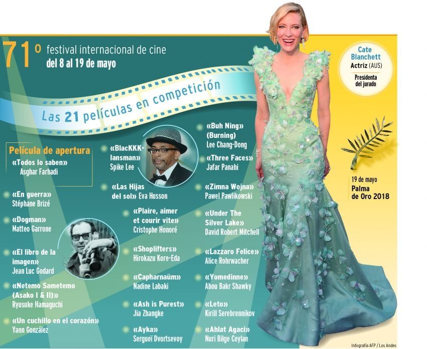 Aunque en una escala no tan gigantesca de estrellas, sí se podrán ver los elencos de las películas con las que los críticos están más sintonía con las programaciones habituales para Cannes, comenzando con la noche de inauguración con “Todos lo saben” de Asghar Farhadi (protagonizada por Penélope Cruz, Javier Bardem y Ricardo Darín); “BlacKkKlansman”, de Spike Lee, y el thriller de David Robert Mitchell “Under the Silver Lake”, con Andrew Garfield, actor que ya confirmó su ausencia porque protagoniza la agitada agenda de funciones de la obra de Broadway “Angels in America”.