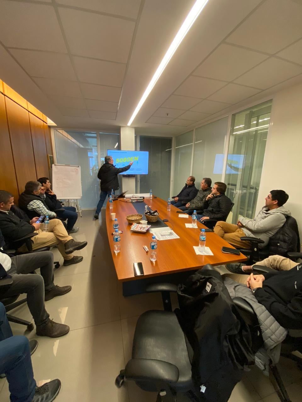 Posteriormente, el grupo de clientes mantuvo una reunión con el equipo de Marketing de la empresa, donde recibieron especificaciones acerca de los tractores serie 5 y 6, con su descripción y tecnología, dado que son las unidades más utilizadas en la región de Cuyo, conociendo en profundidad todas sus prestaciones.