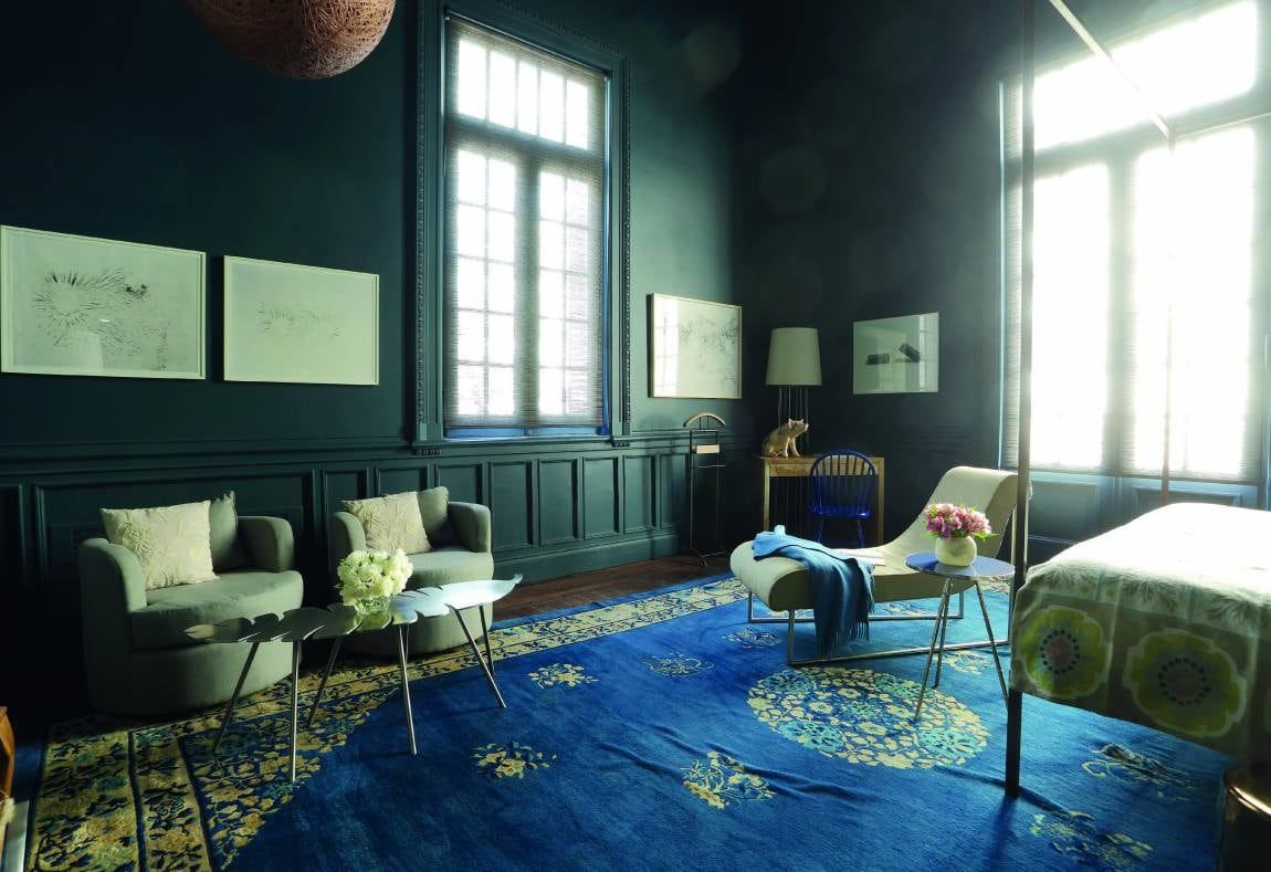 El espacio propone trasladarnos justamente al dormitorio principal de los dueños de casa, a principios de siglo pasado. Aunque la casa tuvo sus reformas posteriores, más Art Deco, la cita es al periodo del auge económico del país, donde los dueños de casa viajaban por el mundo y solían generar cuartos temáticos dentro de la casa, para aglomerar la colección de objetos adquiridos durante estos viajes.