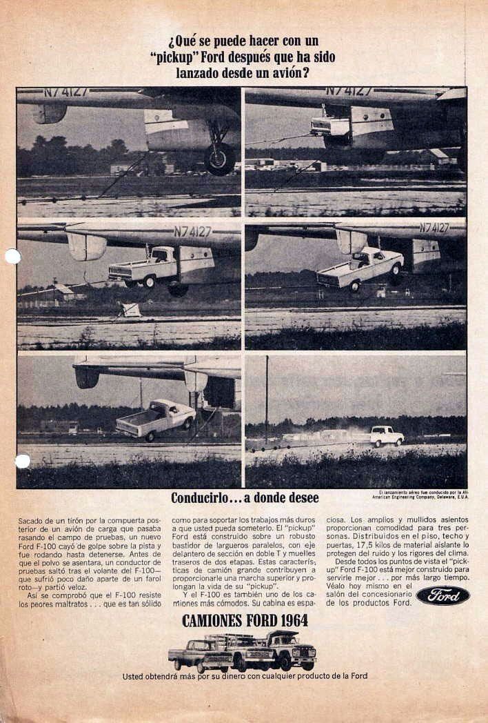 La F100 nació como pick up en 1948, aunque con otro nombre, y en Argentina fue lanzada (industrialmente) en 1959, y en 1964 ya se producía en la planta de Pacheco, inaugurada 3 años antes. Primero había comenzado a fabricarse en Brasil.
