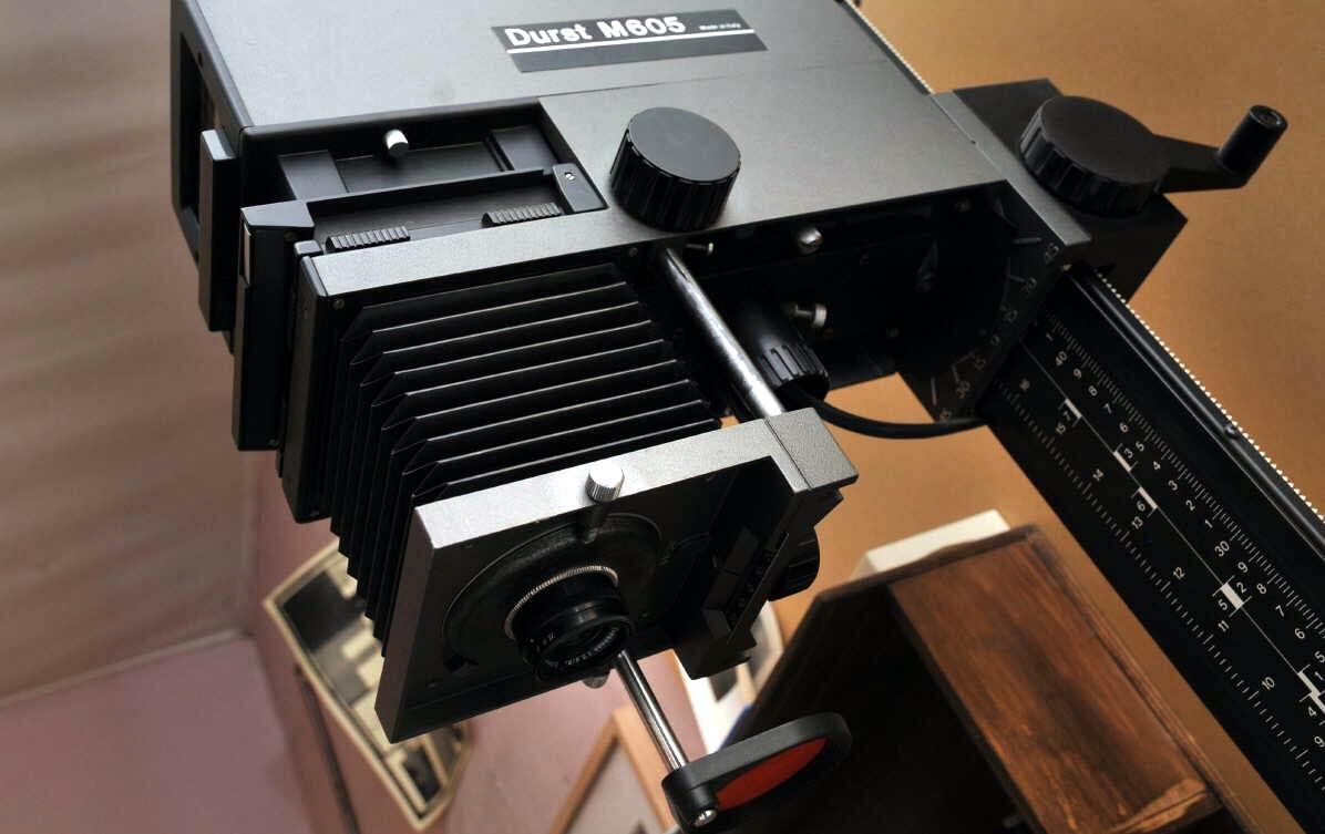 Ampliadora: Una vez que revela los negativos en su laboratorio, acude a una ampliadora. Con ella, logra las dimensiones buscadas. De un 35mm, puede obtener fotografías de 50 x 60.