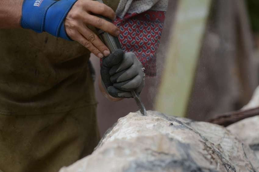 Mientras que trabajar en metal significa “construir”, esto es un proceso de sustracción, un “desmalezamiento” milagroso: es liberar las formas atrapadas en la piedra, como decía Miguel Ángel.