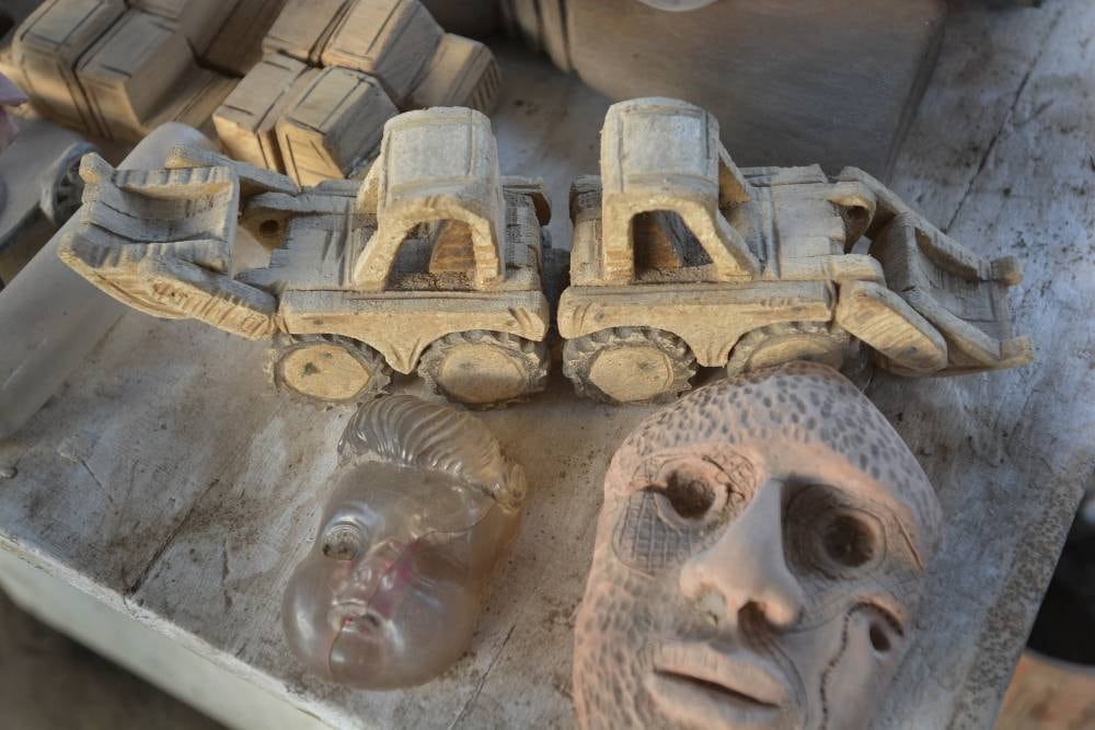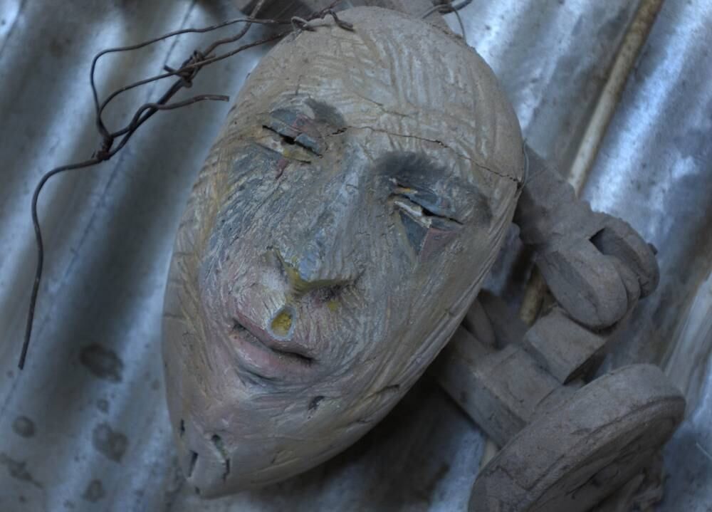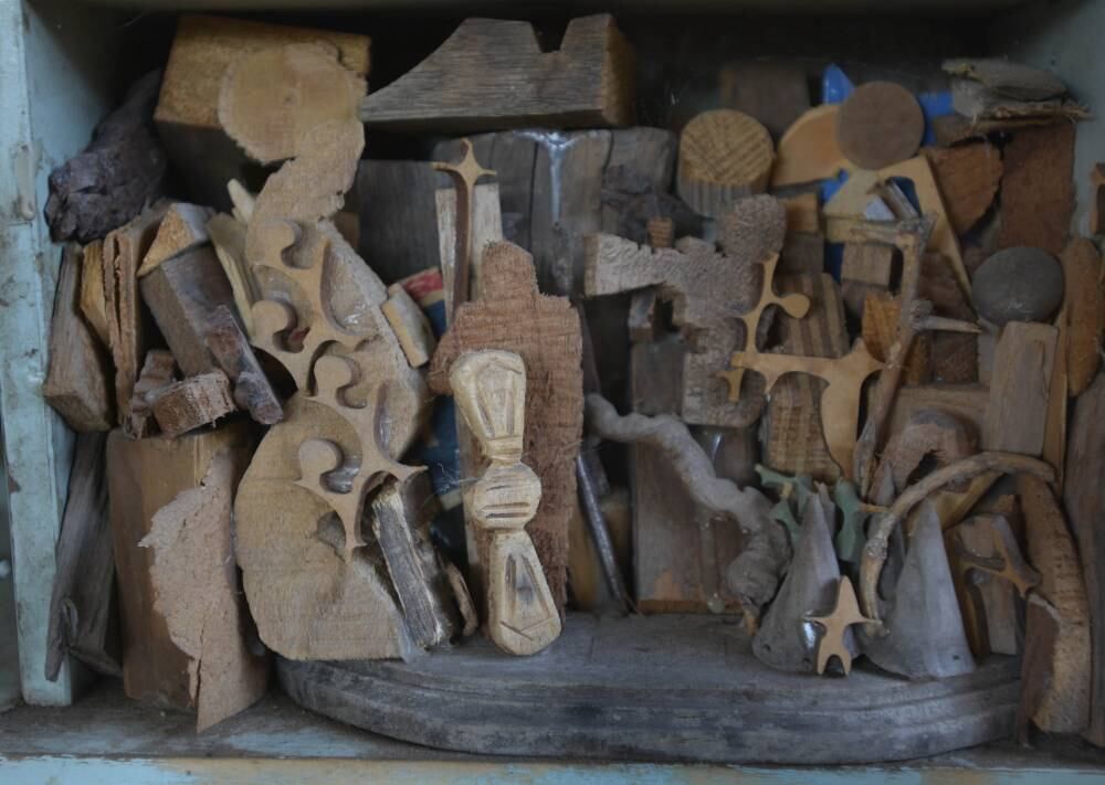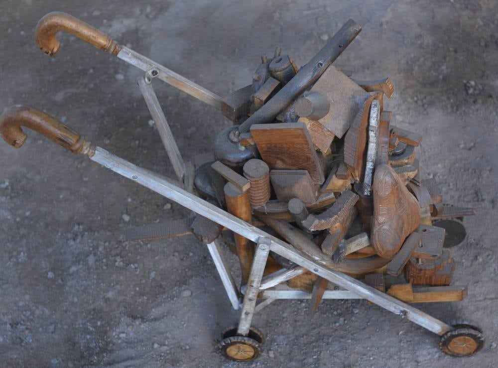 Maderas, hierros y todo lo que está a su alcance, reunidos en un coche de juguete. Cuando sufrió un accidente doméstico, imposibilitado de tallar, usó su fuerza creativa para seguir en acción y generar esta obra.