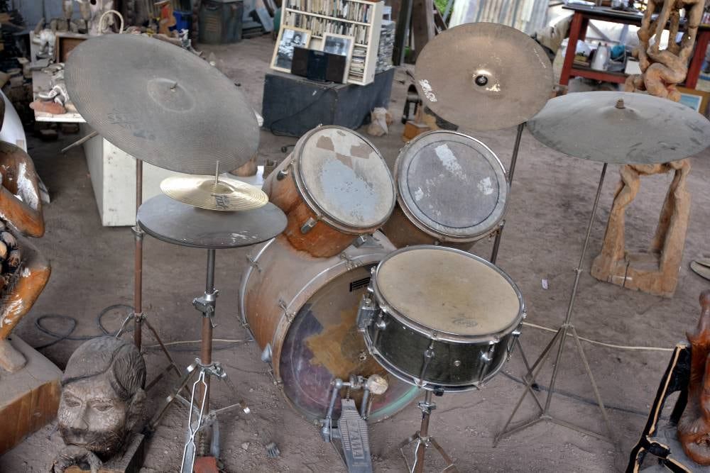 La música es otra de las expresiones artísticas que lo atrapan. En su adolescencia formó la banda Vitro y de ese momento conserva su antigua batería. “Es una batería muy antigua que tuve la suerte de no vender”.